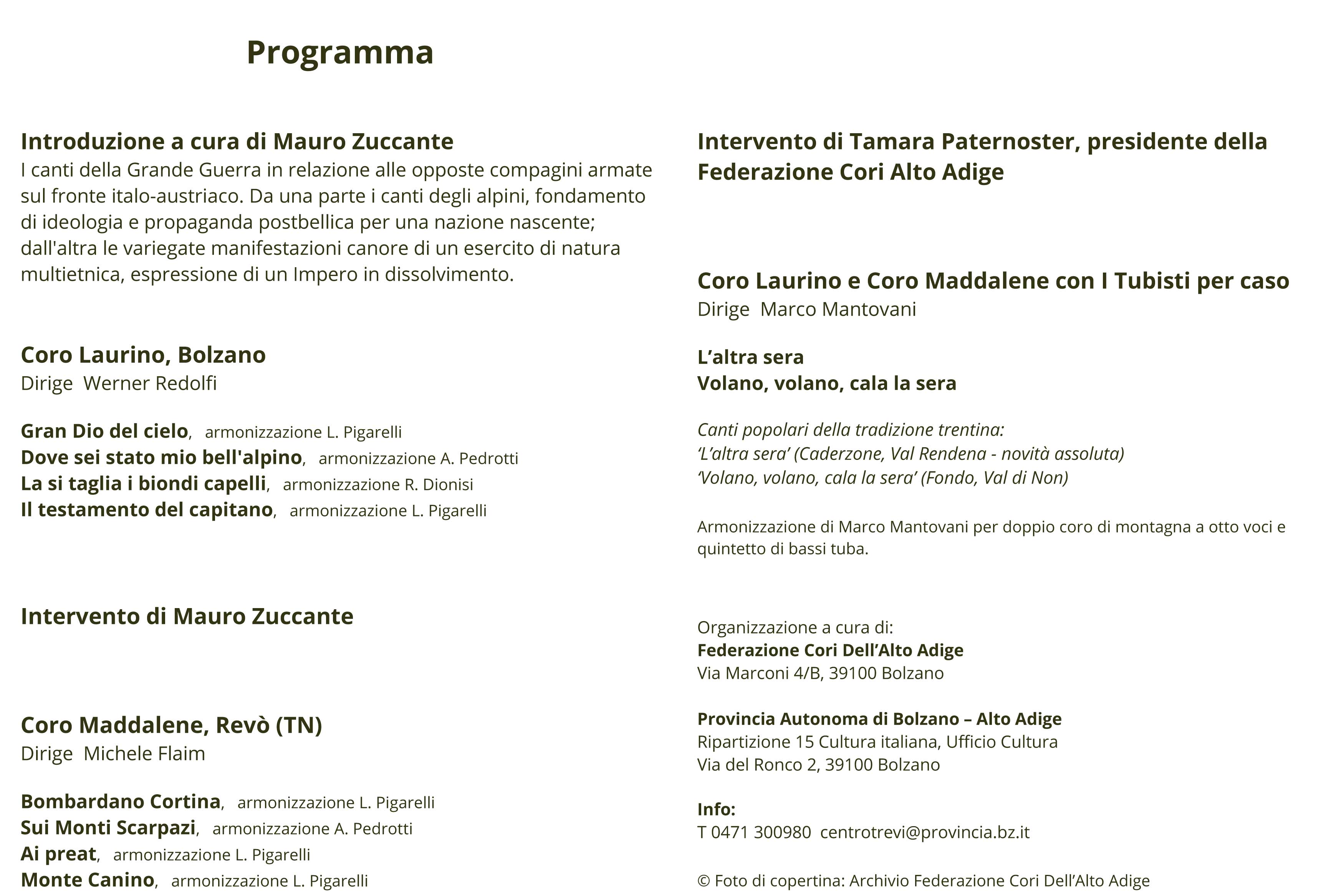 Conferenza - concerto a cura della Federazione Cori dell'Alto Adige